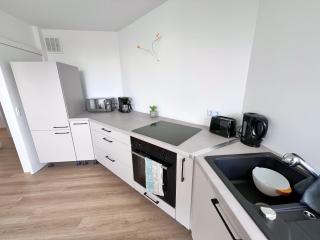 Cet appartement se compose de 2 chambres, d'un salon, d'une cuisine entièrement équipée avec un réfrigérateur et une machine à café, ainsi que de 2 salles de bains avec une douche. Une télévision est disponible.