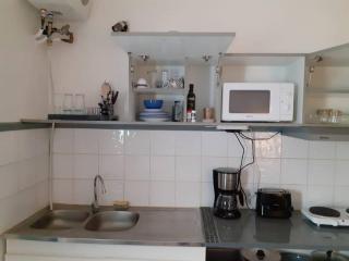 Cet appartement avec climatisation se compose de 1 chambre, d'un salon, d'une kitchenette entièrement équipée avec un réfrigérateur et une machine à café, ainsi que de 1 salle de bains avec une douche et un sèche-cheveux. Des serviettes et du linge de lit sont mis à votre disposition.